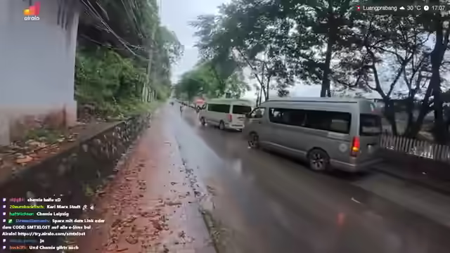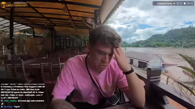 00:30:42Der Streamer berichtet von einer anstrengenden vorherigen Nacht und Schwierigkeiten beim Auschecken aus dem Hotel. Er musste aufgrund von Überbuchung das Zimmer verlassen und bei 35 Grad ein neues Hotel finden. Nun will er eine Tankstelle finden, kämpft aber noch mit dem ungewohnten Rechtsverkehr in Laos, was in seinem Kopf keinen Sinn ergibt, da das Land wie Thailand aussieht, wo Linksverkehr herrscht. Er möchte zurück in die Innenstadt. Er spricht über einen Pilz auf seiner Zunge, den er vermutlich von seiner Schwester hat und plant, sich in der Apotheke einen Zungenschaber zu besorgen. Er beschreibt die Stadt als Weltkulturerbe mit Gebäuden, die an Frankreich oder Österreich erinnern, und vergleicht sie scherzhaft mit der DDR aufgrund des Kommunismus.