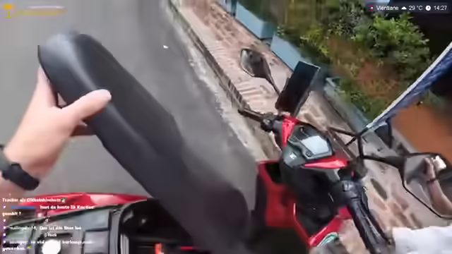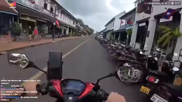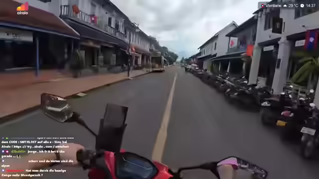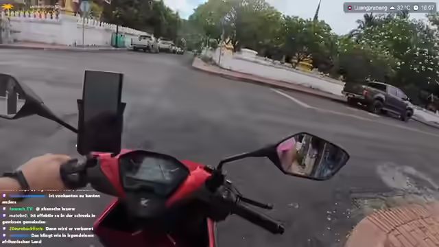00:25:01Nachdem der Streamer sein Mikrofon wiedergefunden hat, befindet er sich nun in Luang Prabang, einer Weltkulturerbestadt. Er hat sich einen Roller gemietet, äußert jedoch Bedenken bezüglich der Mietbedingungen. Im Vertrag steht, dass bei Diebstahl oder Totalschaden des Rollers hohe Kosten von bis zu 3000 US-Dollar anfallen. Dies beunruhigt ihn, da er ein solches Vorgehen aus Thailand nicht kennt und ein ungutes Gefühl bei der Sache hat. Er scherzt sogar über die Möglichkeit eines Geschäftsmodells, bei dem die Vermieter die Roller selbst verschwinden lassen könnten. Anschließend macht er sich auf den Weg, um den leeren Tank des Rollers zu füllen und die Stadt zu erkunden. Er äußert sich positiv über das Fahrgefühl und die Leistung des Rollers im Vergleich zu den üblichen 50er Rollern.