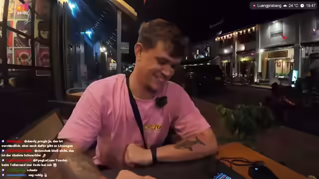 00:40:36Der Streamer erzählt von seiner Zugfahrt, die von großen chinesischen Reisegruppen dominiert war, die er als laut und unorganisiert empfand. Er wundert sich, dass er in der Stadt kaum Chinesen sieht und vermutet sie in Arbeitslagern. Er kritisiert die hohen Gebühren von 80.000 Kipplack (ca. 2,14 Euro) für das Abheben von Bargeld am Automaten und vergleicht dies mit günstigeren Gebühren am Flughafen. Er erwähnt, dass es in Luang Prabang keinen Wasserfall gibt, sondern nur einen bekannten Wasserfall, den er besuchen möchte. Er äußert den Wunsch nach einfachem Thai-Essen anstelle von westlichen Alternativen und erkundigt sich nach der Entfernung zum Wasserfall, die mit einer Stunde Fahrt zu weit für den heutigen Tag ist. Stattdessen plant er, den Pussyberg zu besuchen, um den Sonnenuntergang zu beobachten.