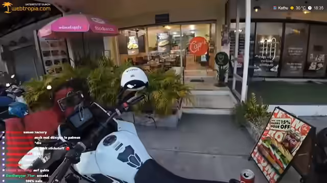02:47:35Am Ende der Einkaufstour gibt der Streamer seine Gedanken zu seinem Motorrad wieder. Er bezeichnet es als idealen Allrounder, der für den täglichen Gebrauch, das Transportieren von Sachen und gemäßigte Offroad-Fahrten geeignet ist, aber kein reines Spaßbike. Er würde sich langfristig ein separates Spaßbike zulegen, aber ist mit der aktuellen Wahl sehr zufrieden, da es für seine Zwecke Sinn macht und bei einem Verkauf einen guten Preis erzielen sollte.
