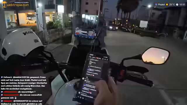 03:02:55Es werden konkrete Pläne für eine längere Motorradreise nach Malaysia und Indonesien geschmiedet. Der Streamer beschreibt den geplanten Routenverlauf von Thailand nach Malaysia und die anschließende Fähre nach Indonesien. Das Hauptziel ist die Besteigung des Vulkans Mount Sibajak in Nord-Sumatra. Zentral für das Vorhaben ist der erfolgreiche Anschluss des Starlink-Satelliten-Internets, um unterwegs streamen zu können. Daher werden technische Lösungen wie die Anbindung an eine Powerstation diskutiert.