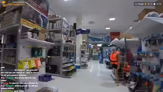 00:12:24Auf dem Weg zum Baumarkt und Big C spricht der Streamer über die aktuelle Wohnungssituation. Er empfindet die Lage als gut, da große Einkaufszentren nur 500 Meter entfernt sind, vermisst aber trotzdem ein kleines Restaurant in unmittelbarer Nähe. Er beschreibt die Hitze des Tages von 32 Grad und stellt das Problem einer fehlenden Arbeitsfläche für die Motorradreparaturen fest. Aufgrund der Hitze ist eine Arbeit im Schatten notwendig, was ihn an einen leeren Bereich des Hauses denkt.