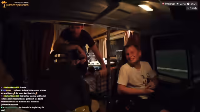 11:56:52Die Streamer reflektieren über den stressigen Tag und stellen fest, dass Belohnungen nach Stresssituationen folgen. Sie unterhalten sich über das alltägliche Leben im Wohnmobil und teilen humorvolle Anekdoten. Mali bietet an, das Essen für den nächsten Tag zuzubereiten, während Tobi über die Herausforderungen des Fahrens spricht.
