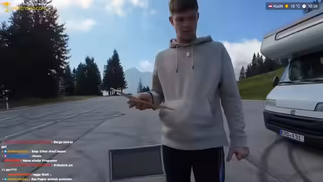 14:20:34Ein Streamer geht einen kurzen Spaziergang von dem Wohnmobil weg, wobei er auf die Bequemlichkeit seiner zu großen Schuhe hinweist. Er betont, dass die Tür des Wohnmobils offengehalten wird und er nur in unmittelbarer Nähe bleibt. Dies führt zu einer Diskussion über das Vertrauen im Stream und die Verpflichtung, nicht unbegleitete Sendungen zu machen. Er entschuldigt sich bei den Zuschauern, falls seine Aktionen asozial wirken könnten.