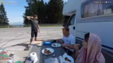 02:26:20Die Streamer stoßen auf praktische Probleme mit dem Abwassertank im Wohnmobil, der aufgrund des Drucks nicht mehr richtig ablaufen kann. Sie finden eine Lösung, indem sie einen Gegenstoß machen, um das Vakuum zu brechen. Gleichzeitig bereiten sie sich darauf vor, das Camp abzubauen und weiterzuziehen. Sie sammeln den Grill und das Geschirr ein, um die Umgebung sauber zu verlassen.