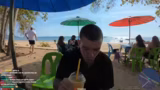 01:41:57Der Streamer erreicht den Klong Moang Beach, der besseres Wasser als der vorherige Strand haben soll. Es wird bemerkt, dass Lennart wieder Unsinn macht. Am Strand befindet sich ein Restaurant mit einer Feuershow. Der Strand wird von den Zuschauern bewertet. Es wird diskutiert, ob der Strand immer so leer ist, was vermutlich der Fall ist, da gerade noch High Season ist. Krabi wird dafür gelobt, dass es sowohl belebte Strände wie Ao Nang als auch ruhigere Strände gibt. Es wird erwähnt, dass alle Strände auf der Sonnenuntergangsseite liegen. Der nächste Strand soll der Tupkek Beach sein, aber vorher wird ein Smoothie geholt. Es wird sich über Wahlwerbung im Chat beschwert. Zudem wird diskutiert, ob man in die Pool- und Handtücher-Kategorie wechseln soll, wenn man sich in Strandnähe befindet.