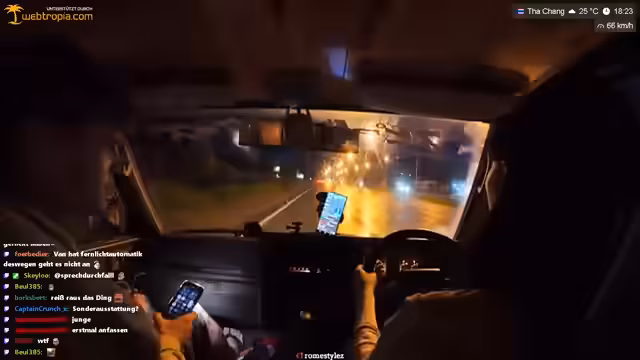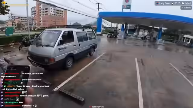 00:17:48Das aktuelle Ziel des Streamers ist der Khao Sok National Park, der etwa 300 Kilometer entfernt liegt. Die Reise dorthin ist jedoch vom Wetter abhängig und macht flexibel. Als Alternative wird die direkte Weiterfahrt nach Phuket erwogen, falls die Wetterbedingungen sich verschlechtern. Die Route über Suratani scheint bevorzugt, da eine Fahrt über die Berge bei Rannong für den alten Camper Vanessa zu gefährlich erscheint. Geplant ist, den National Park am selben Tag zu erreichen, was eine reine Fahrtzeit von circa sechs bis sieben Stunden erfordert.