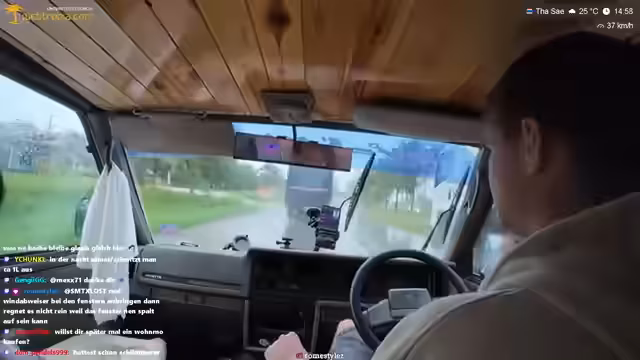 00:00:00Der Streamer berichtet von zwei sehr ungemütlichen Nächten im Camper Vanessa, die durch anhaltenden Regen und Orkanartigen Winde geprägt waren. Durch den Dauerregen konnte das Fahrzeug nicht gelüftet werden, was zu einer stickigen Atmosphäre und Condensation an den Scheinben führte. Gleichzeitig war der Wind so stark, dass ein Öffnen der Fenster unmöglich war, da der Camper beißen zu kippen drohte. Als Folge dieser Bedingungen fand der Streamer kaum Schlaf und sah sich gezwungen, nachts aus dem Fenster zu urinieren.