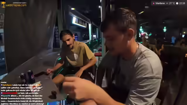 00:02:37Der Stream beginnt mit der Frage, ob der Stream läuft, nachdem es zuvor technische Probleme gab. Es werden erste Eindrücke von Laos geteilt, wobei besonders auf die Unterschiede zu Thailand eingegangen wird. Es wird über das Erkennen von Deutschen im Ausland anhand ihres Blicks und ihrer Mimik spekuliert. Ein Zuschauer namens Günther stellt Fragen zum Kommunismus in Laos, woraufhin kurz auf die politische Situation eingegangen wird. Laos ist offiziell ein Parteienstaat mit sozialistischer Ausrichtung, aber in der Praxis gibt es Einkommensunterschiede und eine gewisse Unzufriedenheit trotz Stabilität. Die Arbeitslosigkeit wird nicht offen erfasst, da viele Menschen informell beschäftigt sind. Es wird kurz über die gute Internetverbindung in Laos gesprochen, die auf den Ausbau durch China zurückgeführt wird, und die günstigen SIM-Kartenpreise (100 GB für 10 Dollar). Es wird erörtert, wie viele Stunden man mit 100 GB streamen kann und dass die Internetinfrastruktur von Land zu Land variiert.