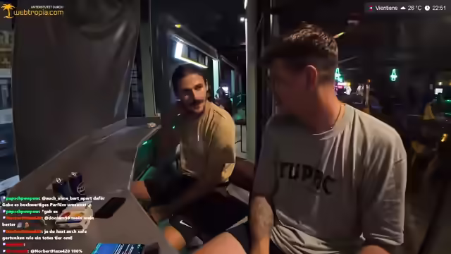 02:36:15Es wird über die Anwesenheit von Ladyboys diskutiert, wobei betont wird, dass es in Asien aufgrund der kleineren Körpergröße schwieriger sei, sie zu erkennen. Es wird der günstige Preis für Bier in einer Bar festgestellt (1,17 Euro für zwei Bier). Es wird über Randale im Chat aufgrund der Ladyboy-Diskussion gesprochen. Es wird dazu aufgerufen, tolerant zu sein und Verwechslungen zu akzeptieren, wenn man als Single in den Urlaub fährt. Es wird betont, dass es in Ordnung ist, wenn man sich irrt und dass man danach nicht schwul ist. Es wird ein Vergleich zum Hintereingang bei der Freundin gezogen. Es wird betont, dass man sich keine Gedanken machen soll und dass alle erwachsen sind. Es wird festgestellt, dass es einen Unterschied zwischen deutschen und asiatischen Ladyboys gibt.