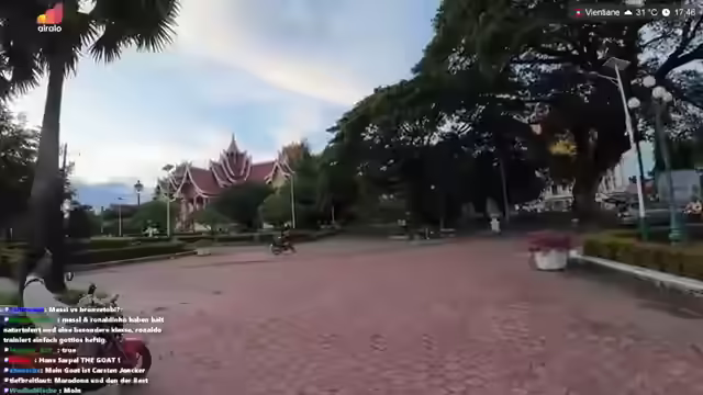 01:26:43Es werden Reisepläne abseits von Phuket diskutiert, wobei Samui als möglicher Wohnort in Thailand in Betracht gezogen wird. Es folgt eine kurze Meinungsäußerung über Donald Trump und seine Bekanntheit als Politiker. Es wird über Fußball diskutiert, wobei Lionel Messi als einer der bekanntesten und sympathischsten Menschen der Welt bezeichnet wird, dem man seinen Erfolg gönnt. Messi wird als talentierter und bescheidener Spieler beschrieben, im Gegensatz zu Cristiano Ronaldo, der sich seinen Erfolg hart erarbeitet habe. Es wird argumentiert, dass Messi rein fußballerisch talentierter sei als Ronaldo. Boris Becker wird ebenfalls als krasser Sportler erwähnt. Es wird ein Tempel passiert, und der Streamer wünscht sich, er wäre aus Gold. Es wird bedauert, dass keine Touristen anwesend sind, und der Wunsch geäußert, Locals kennenzulernen und nicht alleine auszugehen. Es wird eine Coca-Cola Zero bestellt. Es wird über die Währung in Laos gesprochen (Kipp) und festgestellt, dass sie ein cooler Name ist. Der Akku muss gewechselt werden.