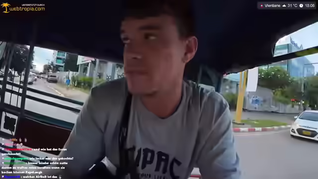 00:23:32Es wird eine Taxi-App namens Loca ausprobiert, um zu einem Copyshop zu gelangen. Nach anfänglichen Schwierigkeiten wird ein Motorradtaxi für 31.000 Kip gebucht. Es stellt sich heraus, dass der Copyshop nur 80 Meter entfernt ist. Der Taxifahrer hat Schwierigkeiten, den genauen Standort zu finden, obwohl er so nah ist. Im Copyshop werden Kopien von Dokumenten angefertigt, die per WhatsApp gesendet werden sollen. Der Name des Copyshops ist Smile Goppy. Es wird überlegt, ein Tuk-Tuk zu mieten, um eine Stadtrundfahrt zu machen. Ein Fahrer wird für 50.000 Kip engagiert, um zu einem Ort namens Sihom zu fahren, von dem nicht klar ist, was es ist. Die Fahrt beginnt mit einem herzlichen Lachen des Fahrers. Es wird festgestellt, dass in Laos Rechtsverkehr herrscht, da es früher eine französische Kolonie war. Ein Zuschauer fragt, ob das Mikrofon an eine DJI-Kamera angeschlossen werden kann, was bejaht wird (per Bluetooth).