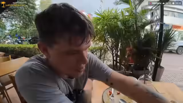 00:23:32Der Streamer dokumentiert den Alltag in Vientiane. Er bucht ein Taxi über eine App und muss dabei auf die Gepflogenheiten des lokalen Fahrers achten. Anschließend besucht er einen Copyshop, um Dokumente zu kopieren und per WhatsApp zu versenden, und entdeckt dabei, dass hier die Hauptsprache Lao ist. Später unternimmt er eine Fahrt mit einem Tuk-Tuk, bei der er die kommunistischen Flaggen und den Präsidentenpalast sieht. Ein kurzer Abstecher zu einem Tempel führt zu einem Gespräch mit einem jungen Mönch, der bereits seit Jahren im Tempel lebt.