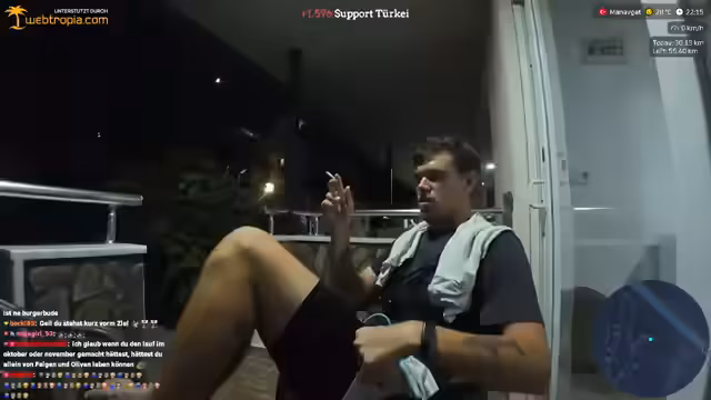 08:57:44Der Streamer berichtet über körperliche Probleme während der 1000-km-Tour durch die Türkei. Seine Füße sind stark beansprucht und seine Laufschuhe sind bereits verschlissen. Er beschreibt die Schmerzen an den Fußballen und erklärt, warum neue Schuhe keine gute Option wären, da sie nicht eingelaufen sind und zusätzliche Blasen verursachen könnten. Trotz der körperlichen Beschwerden ist er motiviert, die restliche Tour zu bewältigen, auch wenn er mental und körperlich erschöpft ist.