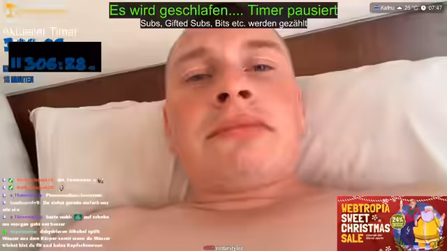 05:03:40Tobi wird zunehmend müdisk und plant, trotz der frühen Uhrzeit (ca. 10 Uhr morgens in Thailand) zu schlafen, da er in drei Stunden aufstehen muss. Er diskutiert, dass er das nächste Mal den Stream früher beenden wird, und verabschiedet sich schließlich von den Zuschauern mit Weihnachtswünschen. Dies unterstreicht die physische Belastung durch den Subathon und seine Notwendigkeit, Schlaf zu priorisieren.