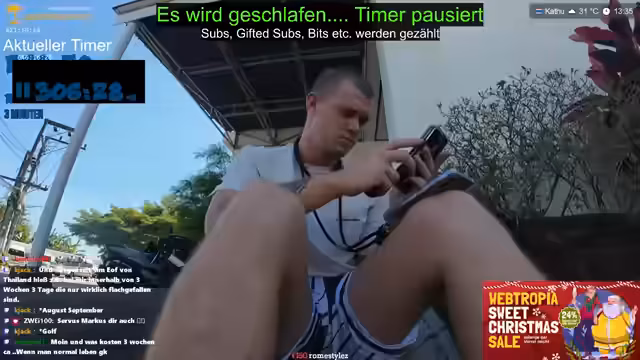 00:00:00Der Stream beginnt mit der Vorbereitung auf ein Subathon-Event in Thailand. Der Streamer interagiert mit seinem Publikum und erwähnt die Anwesenheit von Tobi als Co-Host. Es geht um die Organisation des Events, wobei technische Aspekte wie das Laden von Geräten und die Vorbereitung von Getränken thematisiert werden. Der Streamer betont, dass es sich um einen langen Subathon handelt und kündigt an, dass während des Streams Geschenke verteilt werden. Die Stimmung ist ausgelassen, mit humorvollen Dialogen zwischen den Beteiligten.