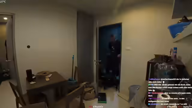 09:03:11Während des Ausfindigmachens des Routers fällt dem Streamer auf, dass er ein teures Gerät vom früheren Internetanbieter im Wert von 200 Euro vergessen hat zu kündigen. Er stellt auch ein altes Huawei-Handy mit einem Krypto-Wallet (500 Euro in Dogecoin) sowie zahlreiche private Fotos und Erinnerungen aus den letzten Jahren aus Thailand und Indien. Er versucht, auf das Wallet zuzugreifen, scheitert jedoch an den Sicherheitsabfragen und findet Bilder von Bleu, Maya Bay und seinem ersten Stream mit 1000 Zuschauern.