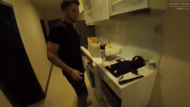 00:00:03Der Stream beginnt mit den ersten Zuschauern, die sich einfinden. Mali begrüßt die Zuschauer herzlich auf Deutsch und Englisch, erwähnt einen möglichen Bundeskanzler-Witz und beginnt mit einer kurzen Tour durch das gemietete Apartment in Bangkok. Dabei stellt er die Räumlichkeiten wie Schlafzimmer, Bad, Wohnzimmer und eine kleine Küche vor. Die Kosten für das Apartment mit Gym und Rooftop-Pool werden mit 1000 Baht pro Nacht als sehr günstig bezeichnet.
