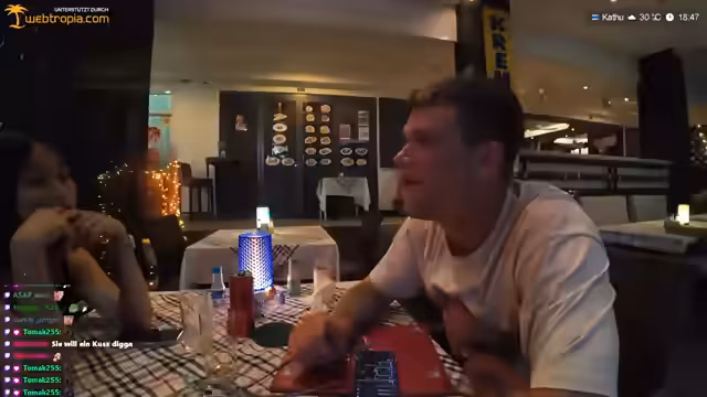 00:52:53Der Streamer bietet personalisierte Reiseberatung für Bangkok in Form von PDF-Dokumenten an. Er empfiehlt Aktivitäten wie eine Bootsfahrt auf dem Fluss über die Piers, die Nutzung der U-Bahn-Linien und den Besuch von Rooftop-Bars. Er gibt konkrete Tipps, wie man mit einem Longtail-Boot eine Rundfahrt buchen kann. Vor Ort beobachtet der Streamer eine große Spinne, die Goldene Seiden-Netzspinne, und erklärt deren charakteristisches golden schimmerndes Netz. Des Weiteren diskutiert er mit Mali das Thema Impfungen für Thailand und kommt zum Schluss, dass für normale Touristen außer Tetanus keine weiteren Impfungen nötig sind.