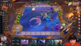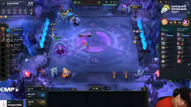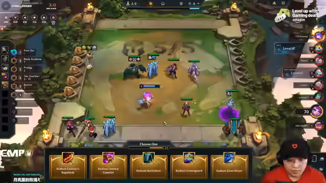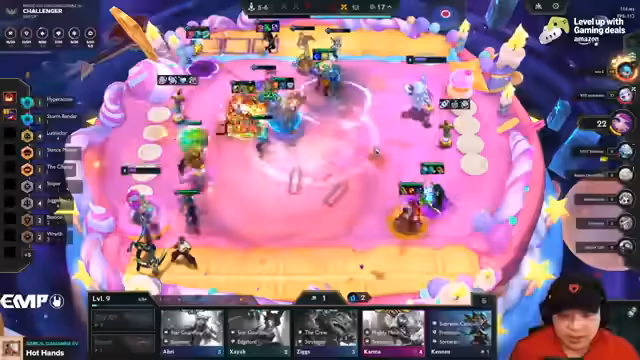 02:50:39Der Streamer ist gezwungen, riskante Power-Up-Rolls zu machen, da er kein Battle-Academy- oder Prodigy-Emblem hat. Er überlegt, Syndra zu droppen und die Power-Up-Removers zu nutzen. Er hat sieben Battle und vier Prodigy, was zu Engpässen führt. Er versucht, Arakan die Items zu geben, aber das Board ist instabil. Das erfordert schnelle Entscheidungen und Anpassungen im weiteren Spielverlauf.