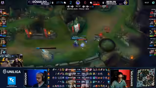 Im Finale der Uniliga zwischen den Teams aus Berlin und Düsseldorf fiel der Sieger eindeutig aus. Das Berliner Team überzeugte mit einem dominanten Early Game und sicherte sich den Titel souverän. Der Gegner aus Düsseldorf konnte gegen den konsequenten Druck des Siegers nicht ankommen und verlor das Match klar.