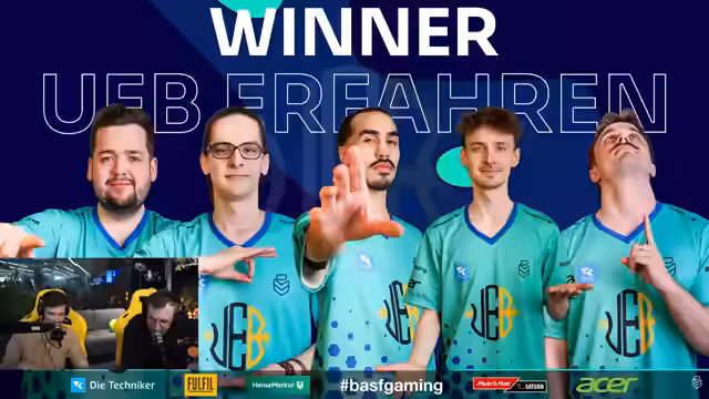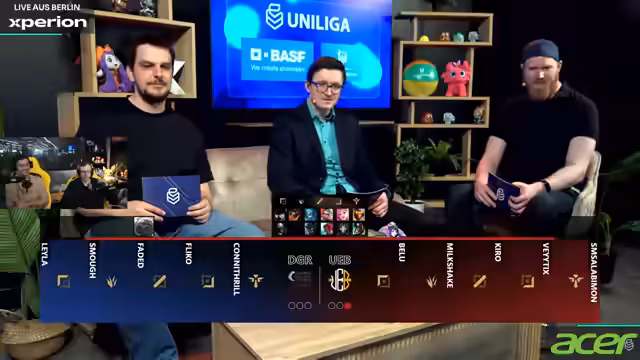 00:51:25Nachdem die theoretische Diskussion ein vorläufiges Ende gefunden hat, richtet sich der Fokus komplett auf die bevorstehende Live-Übertragung des Uniliga-Finals. Die Streamer optimieren ihre Audioregelung, da die Geräuschkulisse im Experiance hoch ist. Sie stellen erneut den Hintergrund der Teams vor: Es ist ein Finale ohne den bisherigen Dominator Karlsruhe, bei dem die Teams Berlin und Düsseldorf, beide noch titellos, um den Meistertitel in der ersten Division kämpfen. Das Niveau des Spiels wird als sehr hoch beschrieben, mit Spielern im Master, Grandmaster und Challenger-Bereich, was ein sehr dynamisches und qualitativ hochwertiges Spiel verspricht.