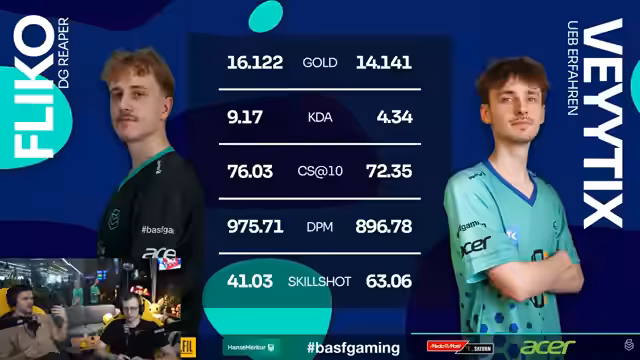 02:50:56Nach dem Spiel wird über die Leistung der Spieler diskutiert. Milkshake wird als klarer MVP bezeichnet, da er in beiden Spielen eine entscheidende Rolle spielte. Kritik wird an Düsseldorf geübt, insbesondere für ihr schwaches Early-Game, das katastrophale Fehler wie Todesfälle und das Verpassen von Objektiven beinhaltete. Düsseldorf muss sich auf das Early Game konzentrieren, um zukünftige Spiele zu gewinnen.