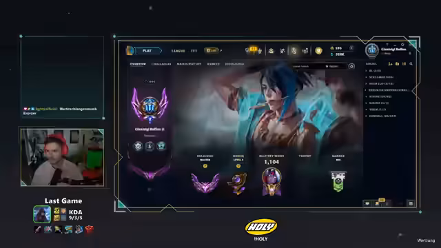 00:00:00Der Streamer begrüßt Zuschauer und stellt technische Einstellungen für Overlays und Emotes ein. Er diskutiert die Nutzung von Better Twitch TV versus 7TV und erwähnt, dass er für BTTV 5 Euro monatlich zahlt. Anschließend kündigt er an, heute bis Grandmaster zu rushen, was ambitioniert sei, aber er sei 'Mr. Ambition'. Er zeigt sein Ranked-Stream-Overlay, das von stammt, und erwähnt, dass man solche Overlays auf Etsy kaufen könne.