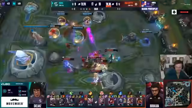 03:36:10Der Fokus verlagert sich auf den LEC-Costream von SK gegen Shifters. SK gewinnt das erste Game und führt im zweiten frühzeitig. Der Streamer kommentiert die Picks und Calls, kritisiert aber, dass SK trotz hoher Führung nicht agiert und Shifters eine comebackChance lässt. Er kommentiert auch die organisatorische Situation im Spring-Split, bei dem nicht alle Teams jede Woche spielen, was zu ungleichmäßigem Spiel kommt. Er äußert sich auch über das bevorstehende Kings of Spain Event, bei dem er leider nicht mitspielen kann.