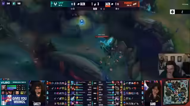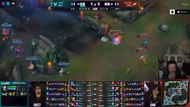 07:23:54Das Spiel zwischen Vitality und Navi wird im Detail analysiert, mit Fokus auf Draft-Entscheidungen und Spielverlauf. Navi setzt auf einen standardisierten Draft mit Ziggs und Nakano, während Vitality einen 'High Risk, High Reward'-Draft mit Aurelion Sol und Gwen wählt. Das Spiel entwickelt sich zu einem langen, von Objectiven geprägten Kampf. Navi hat Schwierigkeiten, Fights zu erzwingen, während Vitality durch cleve Objectiv-Kontrolle, insbesondere die erfolgreiche Verteidigung des Elder Drakes, ins Spiel zurückfindet und es am Ende gewinnt.