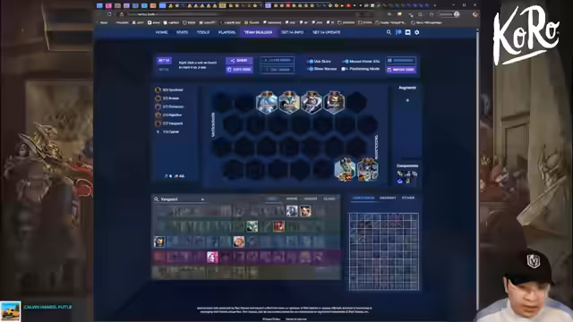 02:05:20Der Streamer entscheidet sich für 'Wex', 'Boombot', 'Cypher' und 'Alistair' und entfernt 'Drangular'. Er sucht nach der besten Positionierung für 'Shogut', die er als hier ansieht. Er erwägt, 'Fiddle', 'Scanner' und 'Togma' zu spielen und konzentriert sich auf 'Wex' und 'Boombot'. Er entfernt 'Dragonclaw', 'Rotclaw' und 'Hurricane' und behält 'Duplicator'. Er ist frustriert über die 'Red Bar von Zoruba-Swap' und überlegt, 'Yuumi', 'Annie' und 'Viego' ins Team aufzunehmen.