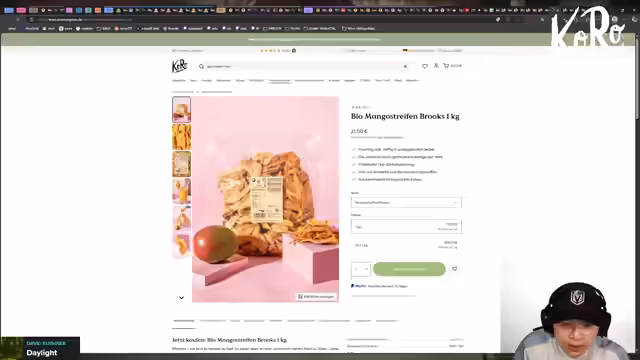 Der Streamer beendet den Stream mit persönlichen Abschiedsgrüßen und einem Werbeblock. Er bedankt sich bei seinen Zuschauern für ihre Unterstützung und erwähnt seinen Partner Koro, mit dem er zusammenarbeitet. Er spricht über seine bevorzugten Snacks wie Mangostreifen und Pistazien-Mousse und fragt die Community um Empfehlungen für neue Lebensmittel. Abschließend ermutigt er die Zuschauer, ihm im Discord oder beim nächsten Stream wieder zuzusehen, gibt einen Gutschein-Code für seinen Online-Shop bekannt und verabschiedet sich freundlich.