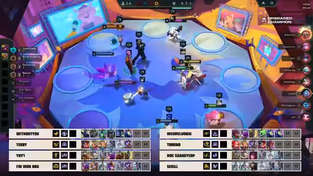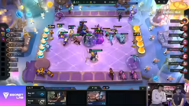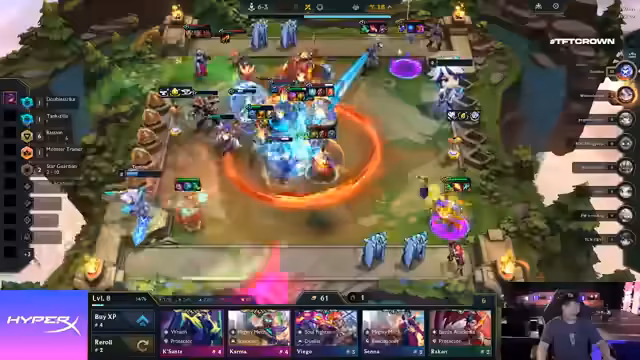 02:26:45Y1 scheidet als Achter aus, was einen schlechten Start markiert, aber das Checkmate-System lässt noch alles offen. Die AP in der Lobby zeigt, dass Tomino und Waimu im Midgame alle hart geschlagen haben, während andere Spieler zu gierig waren. Viele Spieler sind jetzt sehr angeschlagen und suchen gleichzeitig nach Units, was die Situation für Reroll-Compositions wie Kog'Maw und Jenna, die alles getroffen haben, sehr vorteilhaft macht. Tomino beginnt, für Leonas zu rollen, nachdem R1 ausgeschieden ist, was darauf hindeutet, dass er sich auf den zweiten Platz konzentriert, da er zu viele Fast-Nine-Spieler erwartet, die ihn übertreffen könnten. Ironbog scheidet ebenfalls aus, was die Favoriten-Prognosen von Solo und Zola in Frage stellt. Die Spieler, die früh auf Reroll-Compositions gesetzt und ihre Einheiten aufgewertet haben, scheinen in dieser Phase des Spiels die Oberhand zu gewinnen, während die Fast-Nine-Spieler Schwierigkeiten haben, ihre Boards zu stabilisieren.
