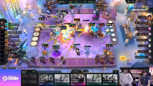 06:02:59Es gab technische Probleme, die einen Wechsel des Turnier-Clients erforderlich machten, da dieser noch nicht auf Englisch eingestellt war. Spieler wie Milk mussten mit hohem Ping in Asien spielen, konnten aber dennoch Erfolge erzielen, teilweise durch Coaching. Im aktuellen Spiel wird die Strategie von Spielern wie Tomino analysiert, der mit einem starken frühen Board auf einen Win-Streak setzt und Crystal Gambit gezielt einsetzt, um seine Ökonomie zu optimieren. Es wird auch die Situation von Zangyob beleuchtet, der einen schlechten Start hatte und durch unglückliche Augments weiter zurückfiel, was seine Chancen auf den Check erschwert. Die Bedeutung von Item-Builds und Kompositionen wird hervorgehoben, insbesondere im Hinblick auf die Anpassung an die Gegner und die aktuelle Spielsituation.