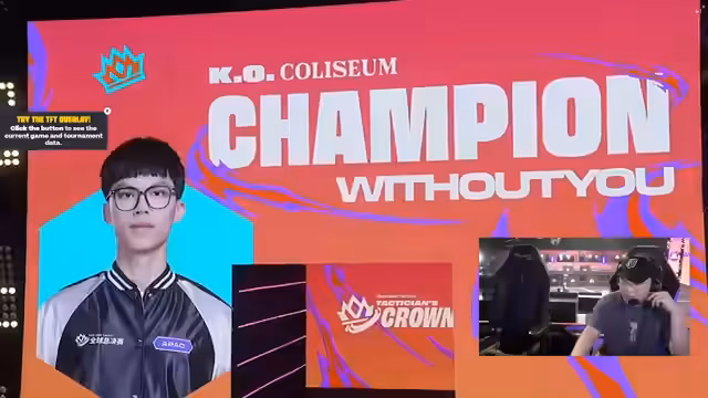 07:09:39Die Spannung erreicht ihren Höhepunkt, als die Spieler in die entscheidende Phase eintreten. Ironbog ist auf Level 9, und die Diskussion konzentriert sich auf die verbleibenden Spieler, die noch nicht im Check sind: Soul und Ironbog. Sollte einer von ihnen den ersten Platz erreichen, würde sich das Spiel verlängern. Die Strategie von YW1 wird beleuchtet, der mit Xante 3 sehr stark ist und sein erstes Augment 'Survivor' noch nicht gebrochen hat. Mit der Eliminierung von drei Spielern würde er 92 Gold erhalten. Without You wird als sehr stark eingeschätzt, während Terry und Sanya als schlagbar gelten. Terry schafft es, einen Cashout zu erzielen, was ihm drei Items und ein Tesla Coil einbringt. Nach einem knappen Kampf und der Eliminierung von TF durch Delicin, steht fest: Without You aus Taiwan ist der neue Weltmeister. Er konnte sich gegen die anderen Level-9-Pusher durchsetzen, profitierte von 'Good for Something' und 'Shadow Clone', die ihm extra Gold einbrachten, und stabilisierte sich schnell, um den ersten Platz zu sichern. Dies ist der erste taiwanesische Weltmeister seit langem, was die Dominanz der APEC-Region in diesem Set unterstreicht.