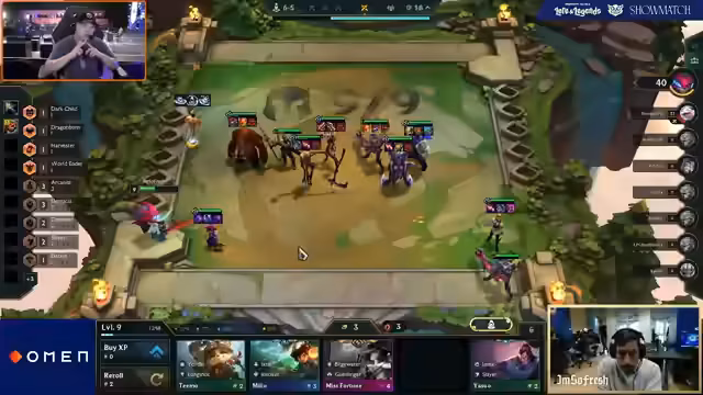 02:56:43Die Spieler warten auf das nächste Augment und Cash, um ihre Schmiede zu nutzen. Tomino setzt auf 3 Crystal Gambit, was bedeutet, dass er dies bis Stage 4.1 spielen muss, um den Loot zu erhalten, was ihn auf niedrige HP bringen würde. Terry hat seine Items auf Janna geslammt und spielt Tech-Expert Overbestest-Boy, was auf schnelle Kämpfe hindeutet. Die Wahl des Augments 'Tower Defense' wird diskutiert, wobei 'Lil Buddies' als gutes Setup für Juggernaut Samira in Betracht gezogen wird. Die Effektivität von 'Little Buddies' mit 'Training Dummy' wird in Frage gestellt. Es wird angenommen, dass die Spieler auf Tier 4 oder Tier 5 Carries setzen werden. Das Spiel ist schwierig, und Tomino wird hart getroffen, kann aber einige Einheiten töten. Terrys Plan scheint eine Lose-Streak bis Stage 4.1 zu sein, um dann auf Level 8 zu gehen und zu rollen. YVV1 ist auf einer Win-Streak, hat aber nur ein Indomitable als Ornn-Item. Die Möglichkeit eines Akali- oder Darius-Malzahar-Builds wird für YVV1 in Betracht gezogen, wobei Samira-Items als gut angesehen werden.