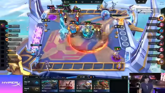 02:00:15Das nächste Spiel beginnt in der Prismatic Prelude Region, einer Pan-Region ähnlich wie Imer oder Amerika, die verschiedene Server wie Japan, Korea und Südostasien umfasst. In dieser Region ist es entscheidend, die Power-Level der Prismatics zu verstehen und zu wissen, welche Prismatics bei 2-1 besonders vorteilhaft sind. Der Augment Tree wird überschrieben, was bedeutet, dass jede mögliche Kombination von Augments danach erhalten werden kann, aber die Informationen über zukünftige Augments begrenzt sind. Es wird empfohlen, in dieser Phase mehr auf Econ zu achten und Units zu halten, die um Artifacts spielen, da das Artifact Prismatic einer der besten Opener ist. Tomino, der letzte EU-Spieler, fühlt sich nicht gut und hat Angst, dass seine Reroll-Strategie im Finale scheitern könnte, da viele andere Spieler auf Level 9 pushen. Er muss den Druck auf die Lobby aufrechterhalten, damit die Level-9-Spieler ihr Endgame-Board nicht zu leicht erreichen.