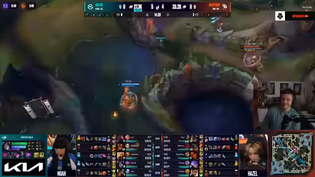 03:51:37Der Fokus verschiebt sich komplett zum aktuellen Spiel zwischen GiantX (GX) und KCB. Die Teams kämpfen um einen wichtigen Sieg. Für GX ist es eine Frage des besseren Seedings, während für KCB dieser Sieg eine der letzten Chancen ist, im Split in die_ADC (Pro League) aufzusteigen. Es wird eine spannende Partie in der Arena, bei der sich KCB am Ende mit einem klaren 5 zu 0 Ace durchsetzen kann und mit einem positiven Gefühl in die Playoffs startet.