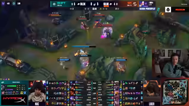 04:50:05SK Gaming gewinnt das Spiel am Ende durch einen dominanten Teamfight, der den Baron-Nashor sichert. Der AD-Carry Joppa von SK glänzt hierbei mit einer starken Leistung. Der Sieg von Shifters ist damit gescheitert, was bedeutet, dass sie die Playoffs verpassen. Dieses Ergebnis hat auch Konsequenzen für andere Teams wie G2 und Lost for Tones, deren Playoff-Chancen nun ebenfalls nicht mehr in ihrer eigenen Hand liegen, da sie ebenfalls wichtige Spiele verloren haben.