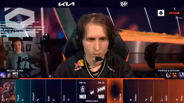 05:17:42Im Vorfeld des Spiels zwischen Emkoi und Navi wird der Draft der beiden Teams eingehend analysiert. Es wird erörtert, warum der Corki-Nami-Pick für Emkoi eine sehr starke und bewährte Wahl ist, insbesondere gegen die erwartete Taliyah von Navi. Gleichzeitig wird kritisiert, dass der Aatrox-Pick von Navi, insbesondere auf Toplane, gegen die Taliyah-Korki-Kombination problematisch und eher ein 'Kackpick' ist. Der Kommentator vermutet, dass der Spieler den Aatrox aus persönlichem Wunsch gespielt hat, da er ein Main des Champions ist, was die strategische Schwäche des Picks noch unterstreicht.