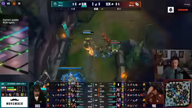 03:40:18Die Wrestling-Analogie wird vertieft, als Unterhaltungselement für ein ansonsten ruhiges Spiel. Der Kommentator erläutert, dass Wrestling zwar inszeniert (Fake), aber dennoch geiles Schauspiel sei. Beim Spiel selbst wird ein taktischer Fehler von KCBs Mid-Liner kritisiert, der zu einem frühem Tod führte. Gleichzeitig wird die gute Positionierung des Supports (Thresh) gelobt. Der Kommentator verknüpft dies mit seiner persönlichen Erfahrung als ADC und der Herausforderung, einen guten Ersatz für einen fehlenden Co-Caster zu finden.