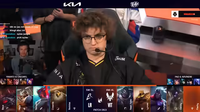 06:45:43Nach dem verlorenen Spiel gegen Heretics kritisiert der Streamer KC scharf, insbesondere die Leistung des Supports Busio, dessen Nami-Ultimates wirkungslos blieben. Sein Verhalten wird als 'reportable' (meldepflichtig) bezeichnet. Die Stimmung wird dramatisch, als der Fokus auf das bevorstehende G2-Spiel wechselt, in dem G2 um das Playoff-Ticket gegen Fnatic kämpft. Während der Analyse der Drafts für dieses entscheidende Spiel äußert der Streamer Zweifel an der Game-Plan von G2, insbesondere an dem Corki-Pick, der gegen die Nautilus-Sejuani-Botlane zu schwach erscheint. Er prophezeit einen Draft-Gap zu Gunsten von Fnatic.