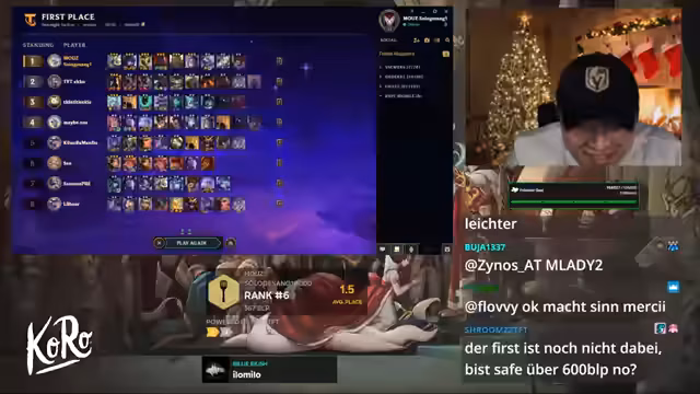 02:08:05Der Streamer analysiert den Spielverlauf und plant Anpassungen. Er überlegt, wie er auf Level 7 fünf 'Dingsbums' bekommen kann und ob er 'Volibear' oder 'Just' mit 'Cloak Stormpit' spielen soll. Es wird festgestellt, dass 'Nidale' zweimal 'Nico' benötigt, was eine neue Information für den Streamer ist. Er plant, 'Aatrox' zu proggen und befürchtet, dass der 'Loose-Strick' nicht weitergeht, da der Gegner auf Level 6 gepusht hat. Es wird überlegt, ob 500 Gold für sieben 'Looses' proggbar sind, und die Belohnung von 400 Gold wird als 'fine' empfunden. Der Streamer hat 'Beth Infinity Edge' und 'Fintech Hodge' und benötigt 'Stormplate' auf Level 7. Er plant, die 'Schmiede' zu proggen und 'Stoneblade' auf eine Nicht-Tank-Einheit zu geben, wie 'Ari'. Es wird eingeräumt, dass er mit 'Nico' und 'Skarner' Fehler gemacht hat und empfiehlt, nur das zu spielen, was man kennt. Das aktuelle Board besteht aus 'Brock', 'Melio', 'Skarner', 'Kobuko', 'Sion' und einem zweiten 'Invoker' wie 'Lissandra'. 'Poppy' wird als nicht notwendig erachtet, und 'Javan', 'Garen', 'Luke' können im Early Game gespielt werden. Es wird festgestellt, dass 'Stoneblade' auf einen 'Non-Tank' muss. Der Streamer ist besorgt, dass er sterben könnte, da er zu viele falsche Einheiten gekauft hat, wie 'Kiana'. Er hat 'Milo 2' geprockt und benötigt 'Rerolls' auf Level 8. Es wird überlegt, ob 'Chancellor' oder 'Nashas' die besseren Items sind, wobei 'Nashas' bevorzugt wird. 'Nico' wird für 'Brock' herausgenommen, und 'Sunder' wird ebenfalls gedroppt. Es wird festgestellt, dass er 'Ischtal' zum ersten Mal spielt und ursprünglich 'Belved' spielen wollte. Er hat 'Ischtal' nun besser verstanden, aber es ist eigentlich zu spät. 'Siljan' wird für 'Tarek' eingesetzt, und ein 'Dupe' auf 'Brock' wird gewünscht. Der Streamer ist gestresst und hat nur noch zwei Leben. Er überlegt, 'Orn' ein Item zu geben, um mehr HP zu bekommen. Er ist Erster und hat keine Zeit, die Gegner-Boards zu scouten. Er muss 'Volibear', 'Felicik', 'Shyvana', 'Senna' denien und 'Zealand' mit 'Blubauf' ausstatten. Er überlegt, 'Level 10' zu pushen, aber sein 'Ball' ist tot. Er benötigt mehr 'Tankiness' und 'Zeit'. Die Fights gehen lange genug. Er muss 'Drakenklauen' auf 'On' geben und 'Quests' wählen, 'rollen', 'umstellen', 'Items verteilen' und die 'Schmiede' öffnen, alles innerhalb von 30 Sekunden. Der Streamer gewinnt das Spiel mit 'Bombe' auf 'Sion'.