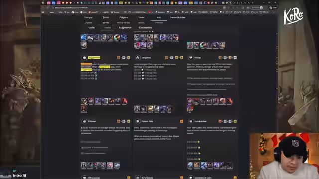 01:40:05Es wird eine 'straight up broken' Komposition mit 'Nico' oder 'Tank Video Apicari' und sechs Rollen diskutiert, die zwei 'Defender', zwei 'Bildover Invoker' und 'Bard' proggt. Für 'Bellweth' wird ein Early Game mit 'Kiana' und 'Schorath' vorgeschlagen, um 'CC' und 'Juggernaut' zu erhalten. 'Briar' mit 'Kiana' zusammen als 'Slayer' wird ebenfalls erwähnt. 'Rexha' wird als Option für später genannt, um zwei 'Void' zu erhalten und in 'Void-Tangate' zu gehen, idealerweise mit sechs 'Bilgewater' so früh wie möglich, um Gold zu farmen. Es wird betont, 'Seraphine' nicht früh zu kicken und stattdessen 'Echo' anstelle von 'Y' zu spielen, um 'Nico' und 'Seraphine' zu droppen. 'Zoe' mit 'Magic Pen' wird als weitere Option genannt. Alternativ wird vorgeschlagen, 'Blitz Show' anstelle von 'Zwang' und 'Nautilus' für vier 'Juggernauts' zu spielen, zusammen mit 'Malser Echo', drei 'Sonnen' und zwei 'Disruptoren'. Als siebte Einheit wird 'Tagon' oder 'Warden' in Betracht gezogen. 'Ash' wird als sehr gut beschrieben und von 'Apex-Leuten' gespielt. Die 'Arcanist'-Komposition wird als 'Hit or Miss' empfunden, da es schwierig ist, 'Annie' oder 'Lux', 'Swain', 'Garen' schnell auf Level 2 zu finden und dann Level 9 zu erreichen. 'Junara' wird als 'okay' bewertet, besonders mit 'Bronze for Life', um 'Rise' zu proggen, was jedoch schwierig ist und 'Aatrox' oder 'Caitlyn Loris' erfordert. Es wird ein Spieler erwähnt, der 'Ryze' auf dem Board hatte, was darauf hindeutet, dass er zuvor ein anderes Board gespielt und dann zu 'Ryze' pivoted hat. 'Bard' wird ebenfalls als stark eingeschätzt, wobei die Wichtigkeit betont wird, 'Sion' und 'Bard' in derselben Ecke zu positionieren und 'Sion' am Anfang in der zweiten Reihe zu platzieren, damit er überlebt und sich durch 'Takedowns' und 'Assists' mit HP hochstacken kann. 'Bridgewater' wird als eine der besten Kompositionen genannt, bei der 'Gangplank' als Itemträger im Early Game genutzt wird, um 'Witchwater' zu farmen und dann später auf ein normales 'Slayer Bot' umzusteigen. Es wird angemerkt, dass 'Rise' nach dem Nerf sehr schwierig zu proggen ist.
