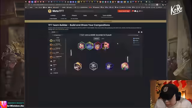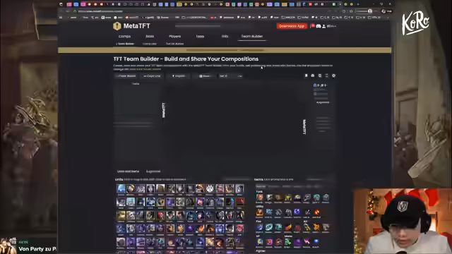 05:49:29Die Zusammenarbeit mit MetaTFT wird weiter erläutert, wobei der Streamer hervorhebt, dass er spezielle Tools von den Entwicklern erhalten hat, um seine Tierlists und Empfehlungen effizienter zu gestalten. Diese Tools ermöglichen es ihm, alle Level, Artefakt- und Radiant-Items auf einmal hinzuzufügen und einfach auszuwählen. Zukünftig sollen seine Comps, Item-Empfehlungen und Augment-Vorschläge direkt über die MetaTFT-App ingame abrufbar sein, was den Spielern eine große Hilfe sein wird. Er betont die Qualität der App und der Seite und freut sich über die Unterstützung durch einen fähigen Entwickler. Im Anschluss an die Vorstellung der Partnerschaft konzentriert sich der Streamer wieder auf das Spielgeschehen und diskutiert verschiedene Champion-Kombinationen wie Ash-Trinder, Seiju, Niko und Defender, wobei er die Herausforderungen bei der Item- und Unit-Platzierung hervorhebt. Es werden auch Überlegungen zu spezifischen Items wie Rageblade, Last Whisper und Kraken angestellt, um die bestmögliche Synergie zu erzielen.