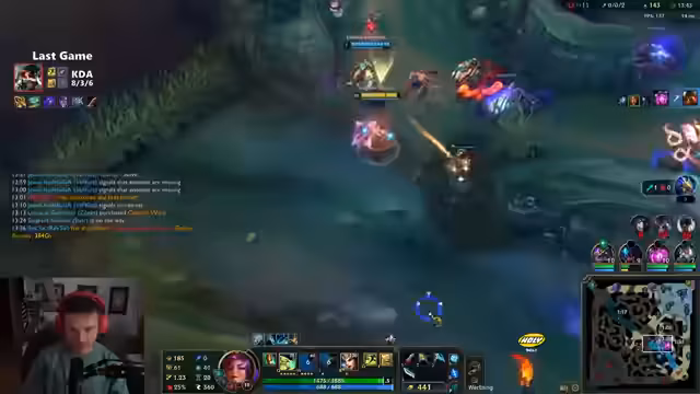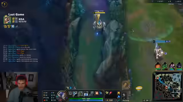 02:11:59Es kommt zu einem andauernden Frust über das ungewöhnliche Spielverhalten der gegnerischen Orianna. Ihre Aggression ist für die Elo untypisch und wird als krank oder sogar wie das Verhalten eines programmierten Bots empfunden. Ein vermeintlicher 2v2-Fight gegen eine Orianna und einen Jax scheitert, da die eigene Jenna nicht positioniert ist. Eine spätere Sequenz führt zum Tod, da eine Alistar-Kombo nicht richtig geflasht und der Evolve-Skip nicht korrekt ausgeführt wurde. Der Fokus verlagert sich darauf, die seitlichen Lanes zu gewinnen, während die Mitte gemieden wird.