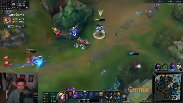 05:21:15Für das nächste Spiel wechselt der Streamer zur MF. Die strategische Diskussion umfasst Item-Builds und die Wahl zwischen Full-Lethality und Bloodthirster, wobei BT für das Lane-Phase besser, aber nicht optimal gegen die Jinx gesehen wird. MF wird als stabiler, aber möglicherweise unterbewerteter Champion angesehen. Die Lane-Phase gegen die Jinx wird als sehr schwierig und von Angst geprägt beschrieben, da die Gegnerin viel Vertrauen in ihre Bewegung zeigt und ein hohes Level an Aggressivität an den Tag legt.