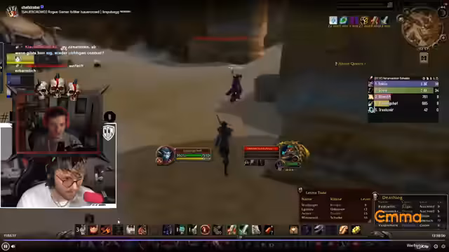 05:00:33Die tägliche Quest-Routine wird fortgesetzt, mit dem Ziel, Level 40 so schnell wie möglich zu erreichen, um das Reiten freizuschalten. Es wird über eine mögliche Kooperation mit anderen Streamern wie Nico gesprochen, um in einer Dreiergruppe zu leveln, was jedoch als ineffizient angesehen wird. Der Streamer verabschiedet sich für den Tag und gibt bekannt, dass die nächsten Tage hauptsächlich für League of Legends reserviert sind, da eine neue Season startet.