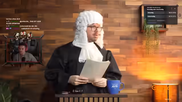 02:20:06Das Ergebnis der Abstimmung steht bei 50 zu 50, was als fahrlässiges Verhalten aller Beteiligten gewertet wird. Der Richter verkündet, dass das Urteil glasklar sei, was auf die tiefe Spaltung der Gilde hindeutet. Chef Strobl wird nicht verurteilt, aber auch freigesprochen, was für ihn keine Entlastung bedeutet. Der Stream endet mit der Ankündigung, dass die Instanz insgesamt zur Verantwortung gezogen werden wird, da alle Beteiligten eine Mitschuld tragen. Die Gildenmitglieder werden aufgerufen, Deutschland zu retten, was auf den fortbestehenden Konflikt innerhalb der Gilde verweist.