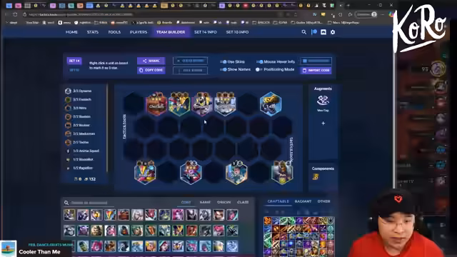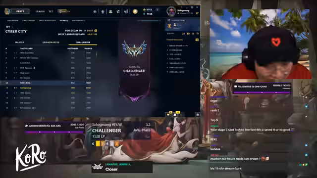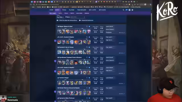 00:43:43Der Streamer analysiert live gespielte Games von Top-Spielern. Dabei werden Metatrends wie Cypher in Verbindung mit Galo 3 oder 5 Cypher plus Javin, Seiju, Ceri diskutiert. Auch alternative Comps wie Shaco Mundo oder AMP Tempo werden als risikoreich, aber mit gutem Spot spielbar, identifiziert.